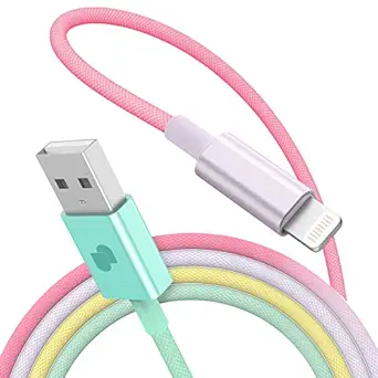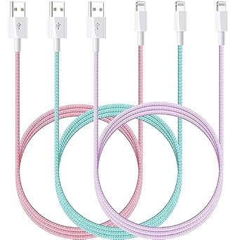 iPhone Charger 6FT 3Pack Lightning Cable Color Kawaii Nylon Braided Apple MFi Certified Fast Charging Cords for iPhones 14 13 12