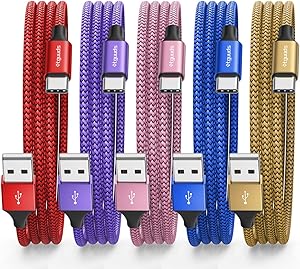 Color USB C Cable 4ft, 5-Pack USB to USB C Charger Cable, Fast Charging Cord Type C Braided for iPhone 15, for Samsung Galaxy