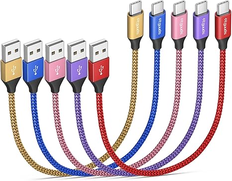 Short USB C Cable 1ft, 5-Pack Color USB to USB C Charger Cable, Fast Charging Cord Type C Braided for iPhone 15, for Samsung