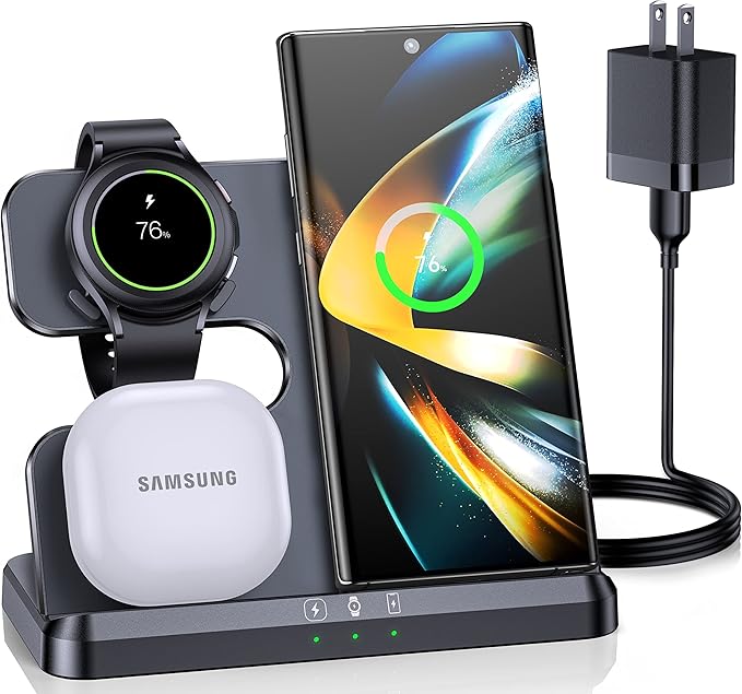 Wireless Charger for Samsung Devices, 4 in 1 Wireless Charging Station for Galaxy S24 Ultra/Z Fold6/Z Flip6/S23 Ultra, Charging