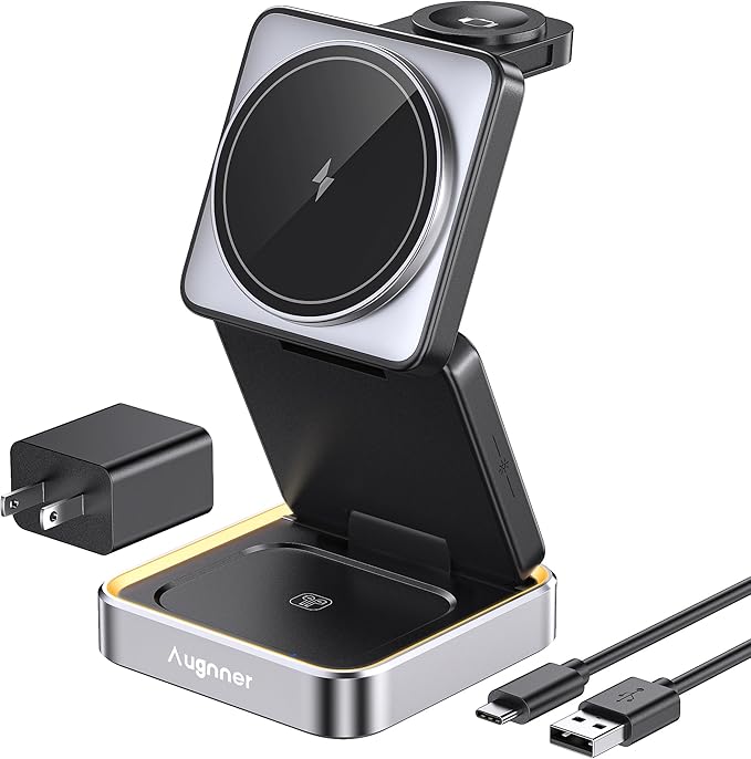 MagGo 3-in-1 iPhone 16 Charging Station, MagSafe-Compatible Wireless Charger Stand, Qi2 Certified 15W Foldable Charger for